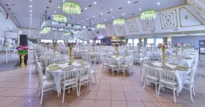 1500 kişiye kadar kapasitesiyle Balo Salonumuz, eşsiz mimarisi, geniş iç hacmi ve özenli dekorasyonu ile özel etkinliklerinize ev sahipliği yapıyor. Şık tasarımıyla dikkat çeken salonumuz, farklı gelin-damat çıkışıyla düğünlerinizi unutulmaz kılmaktadır.