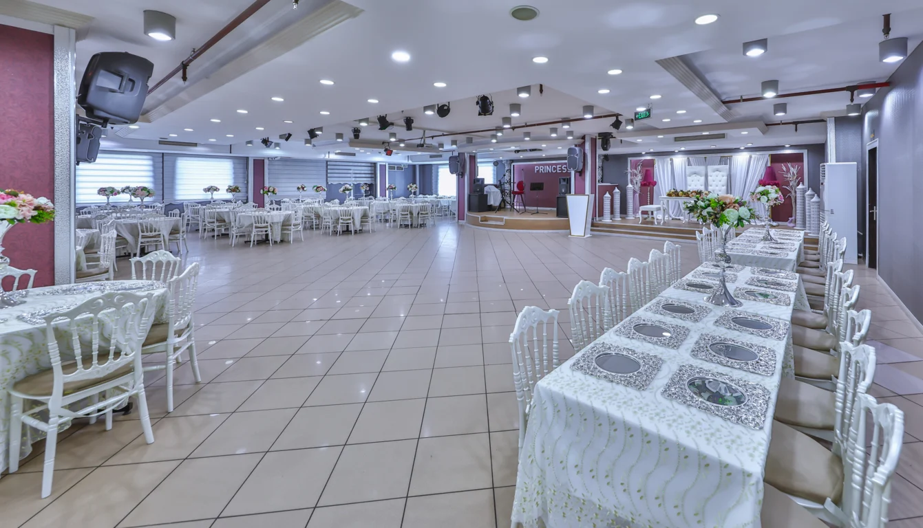 Gümüş Salon, 300 kişilik kapasitesiyle butik davetler ve kına geceleri için özel olarak tasarlandı. Şık atmosferi, özel ses ve ışık sistemi, dans pisti ve projeksiyon gibi donanımlarıyla unutulmaz anlar yaşamanız için ideal bir ortam sunuyor.